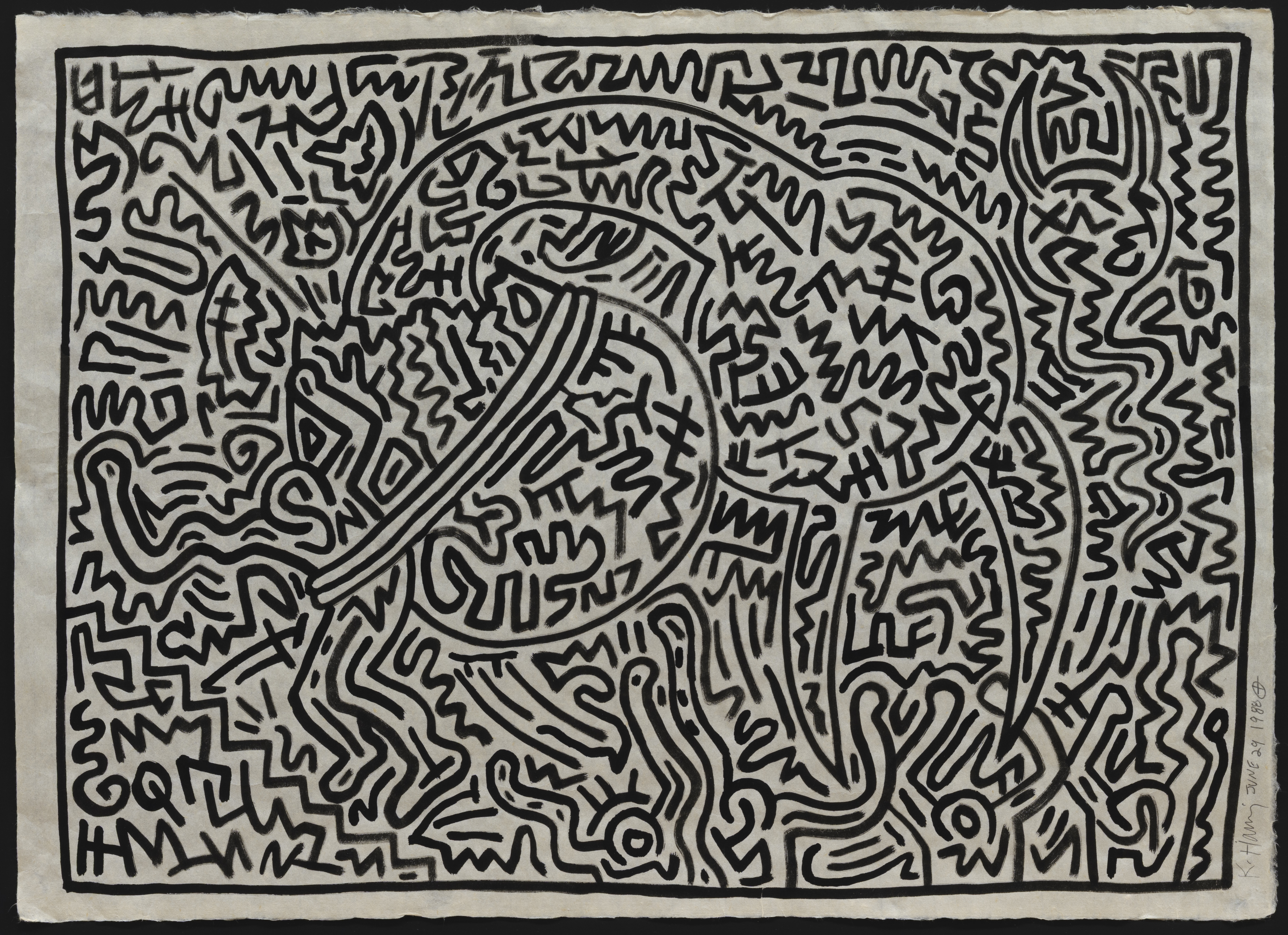 Jean Dubuffet (Le Havre 1901-1985 Paris) Lampe et Balance 1, 1964 Oil on canvas 97 x 130 cm Signed and dated bottom centre; signed, titled and dated 'juillet 64' on reverse Provenance: Dr. Jacqueline Porret-Forel, Paris (gift from the artist in 1966); collection in the United Arab Emirates; European collection Literature: Max Loreau, Catalogue des travaux de Jean Dubuffet, Fascicule XX: L'Hourloupe I, Paris, 1966, cat. no. 367 (ill. p. 168). Exhibition: Jean Dubuffet, Galerie Georges Moss, Geneva, Nov. 1969-Jan. 1970, cat. n° 8