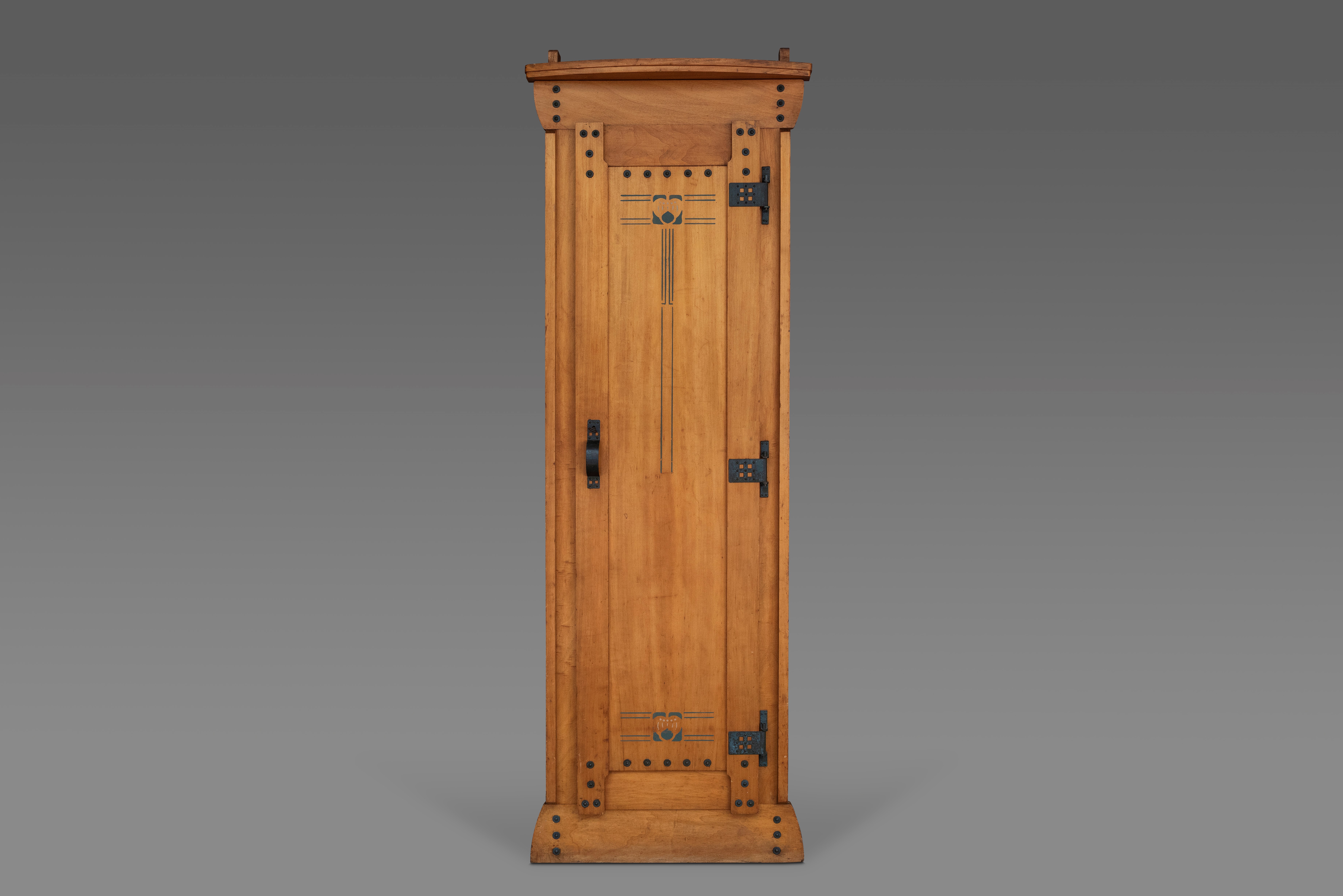 The grandfather clock of around 1906, in oak, brass and blue faience, distils his approach to vertical composition and measured ornament. The interplay between its restrained colour accents and structural sobriety demonstrates his ability to find harmony without excess.