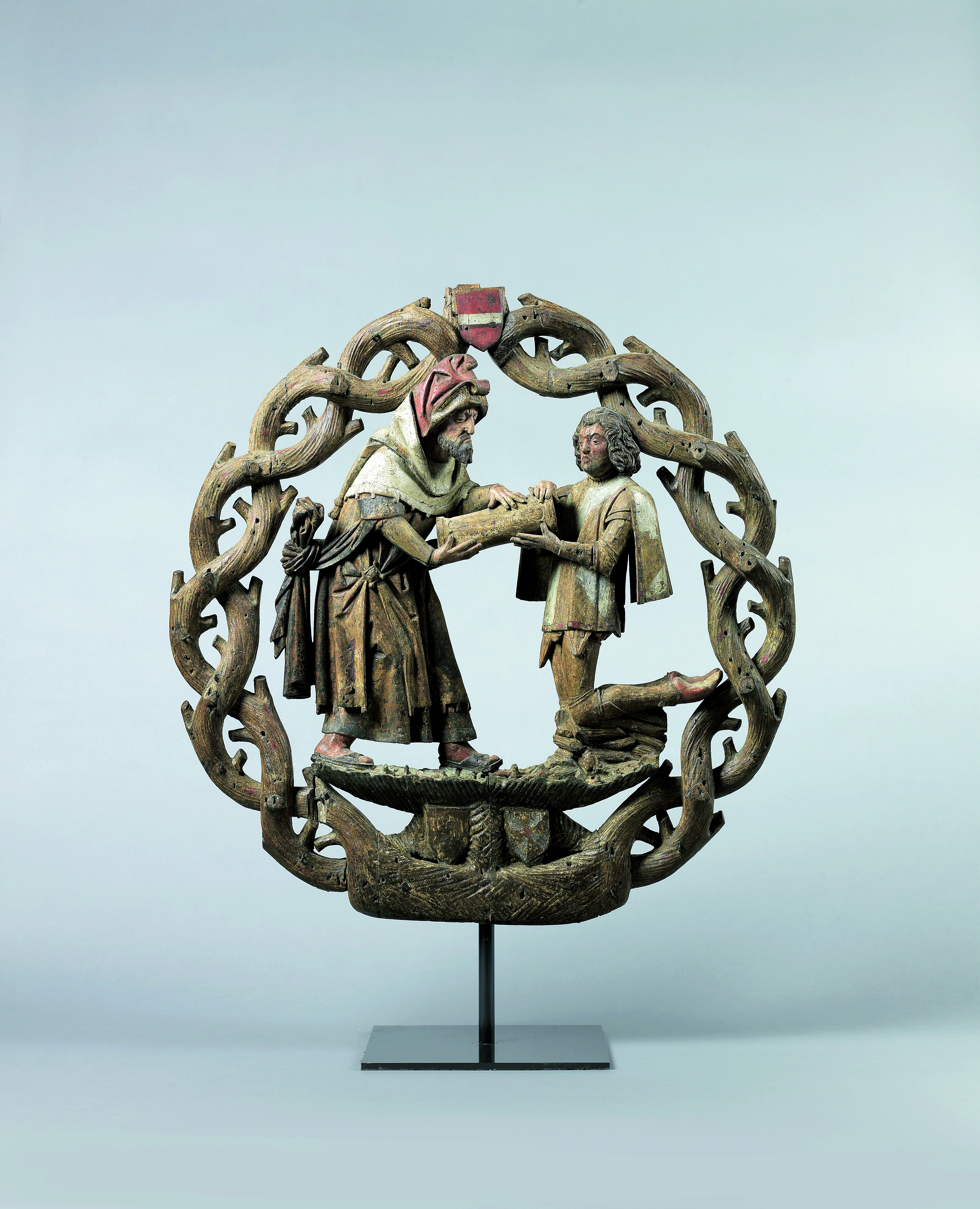 Bruges workshop, The Holy Blood ensign, 1529, polychromed wood, Ø 64 cm.