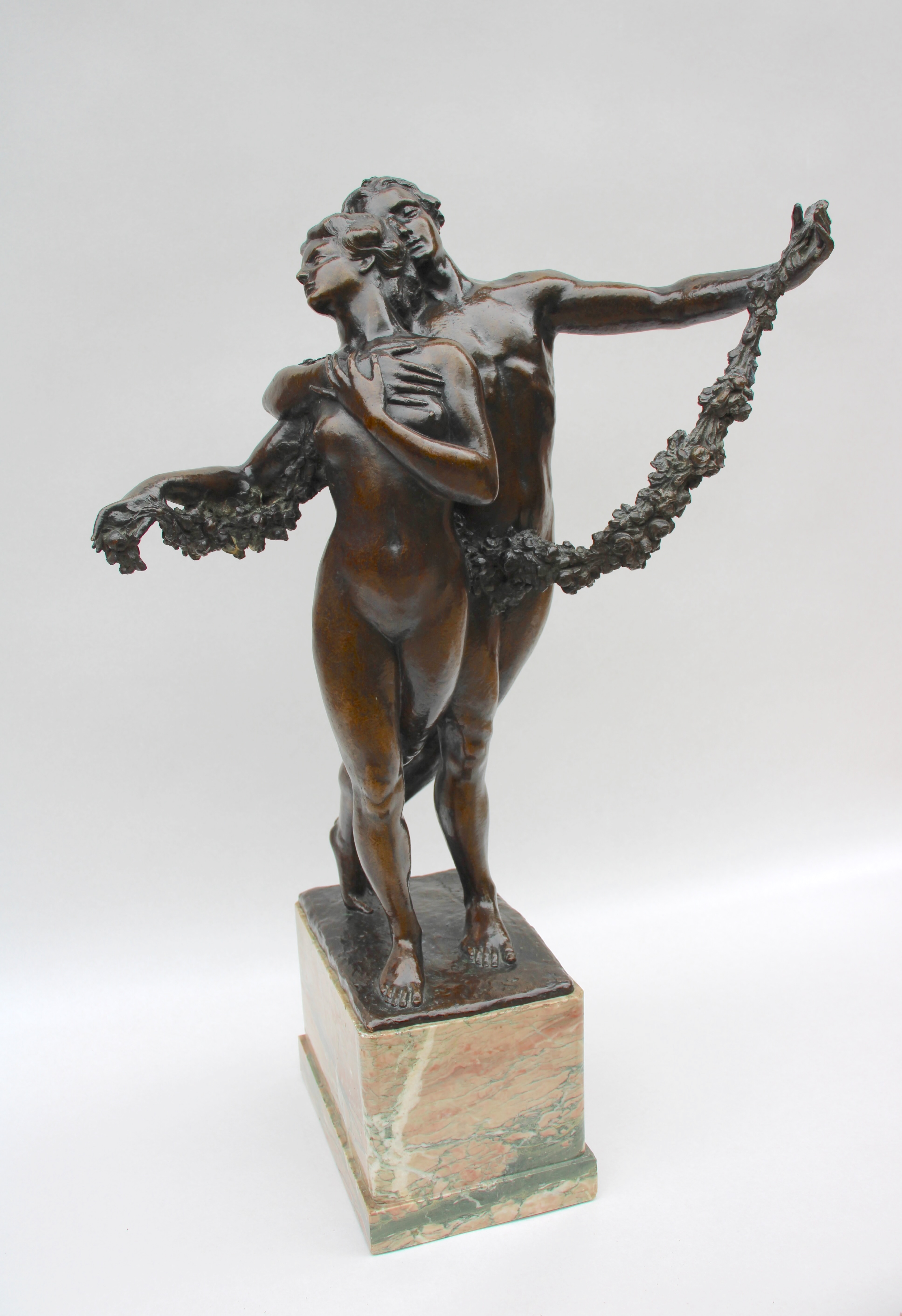 Philippe Wolfers (Brussels, 1858-1929) Fiançailles (Engagement), circa 1911 Bronze with brown patina and original marble base H 50.5 cm Signed Ph. Wolfers Lost-wax cast n° 1 Provenance: private collection, France Literature: La Dynastie Wolfers–de l’Art nouveau à l’Art déco, Werner Adriaenssens & Raf Steel, p. 396