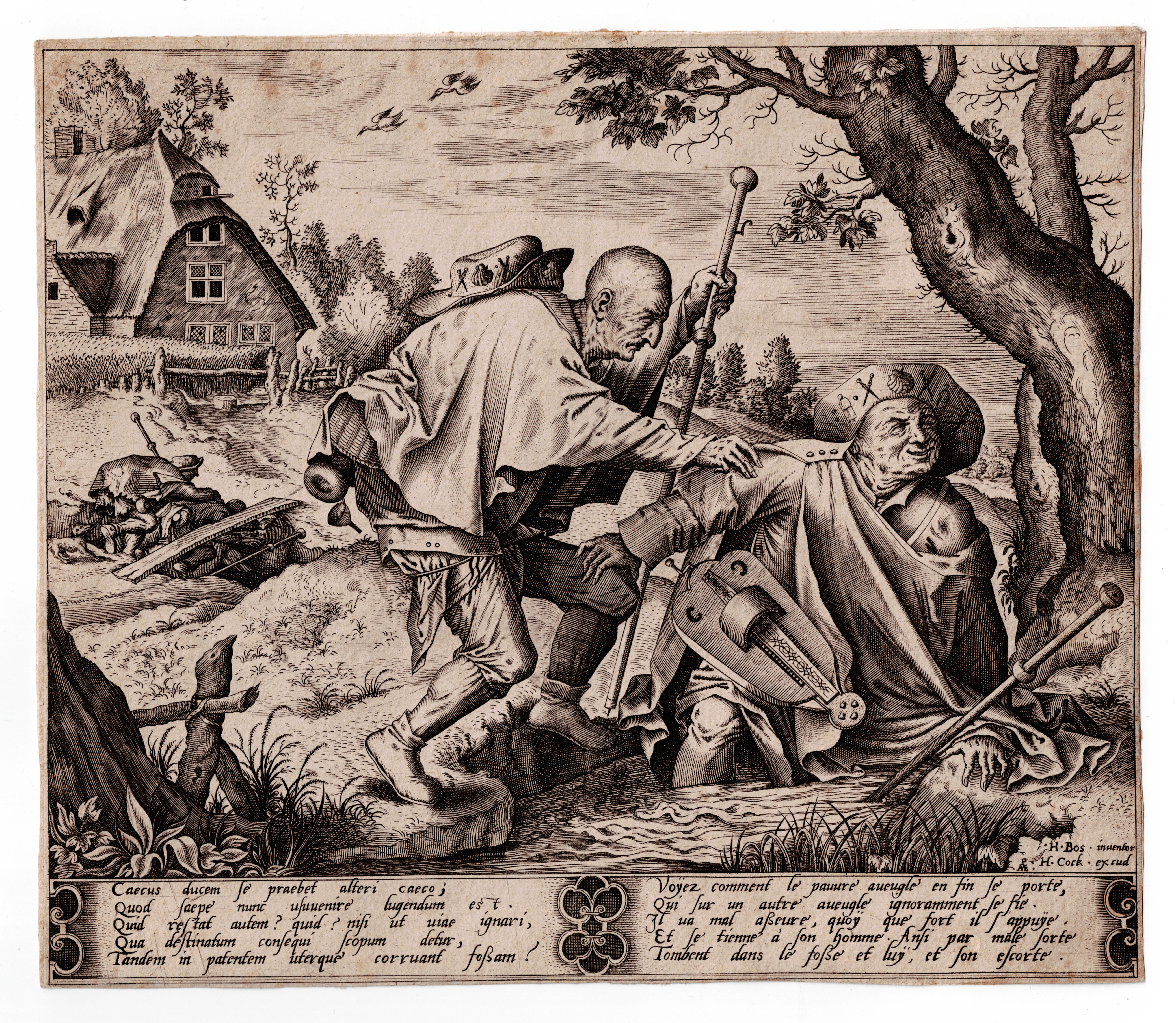 Hieronymus Bosch ('s-Hertogenbosch, circa 1450-1516) Parable of the two blind men, circa 1540-1570 Engraving by Pieter van der Heyden (circa 1530-1572) Published by Hieronymus Cock (Antwerp, 1518-1570) 22.2 x 22.5 cm References: New Hollstein Dutch 20 1(5), first state Lex Antiqua, Antiquarian printseller