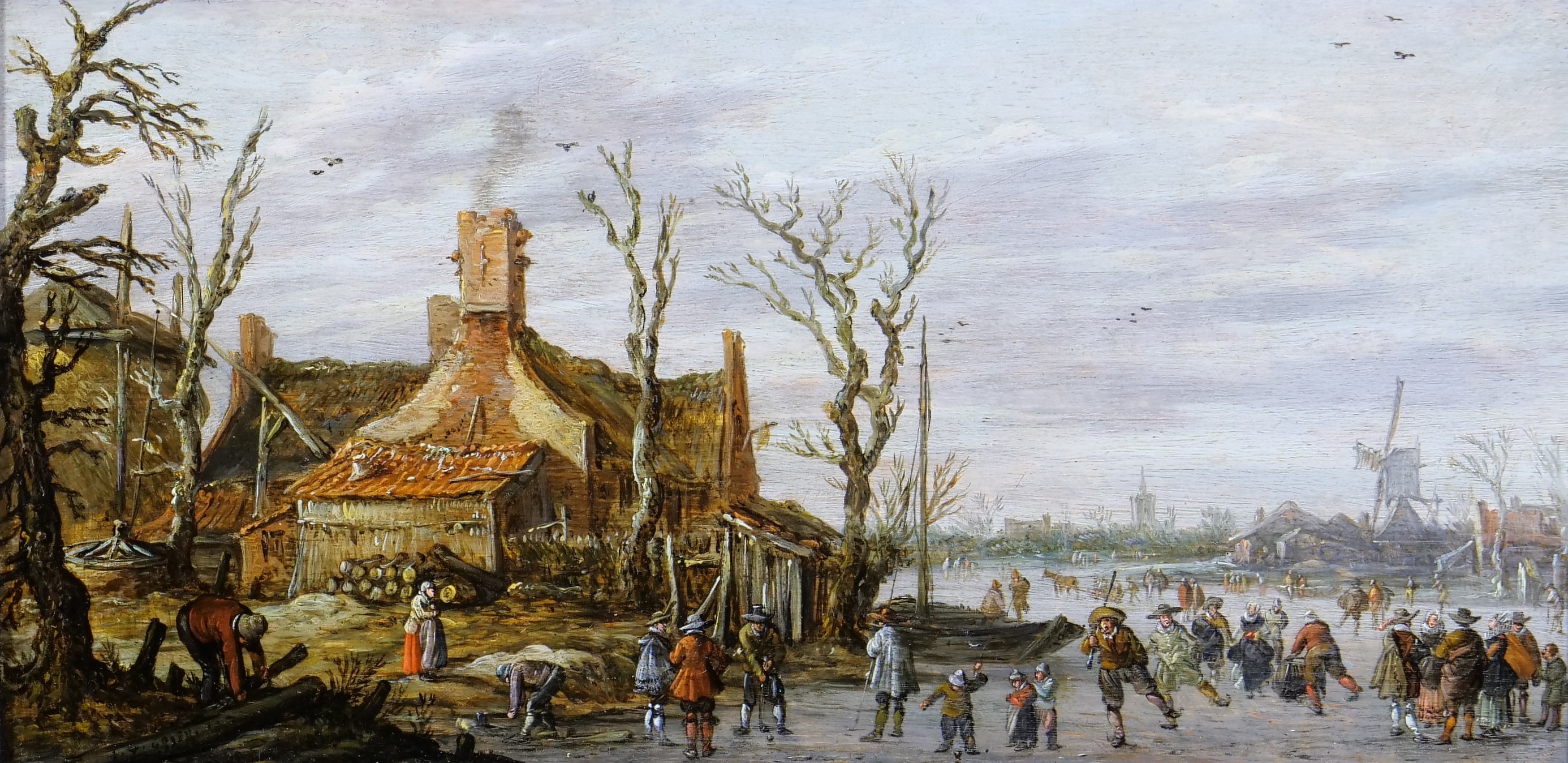 Jan Josefsz. van Goyen (Leiden 1596-1656 The Hague) Winter landscape with skaters, elegant figures and kolf players on the ice in a village Oil on panel 13.6 x 26.8 cm Signed and indistinctly dated lower left ‘I.V. GOYEN. 162.‘ Provenance: anonymous sale, Drouot, Paris, 21 March 1874, lot 23 (Frs. 510), erroneously as a pendant to the consecutive lot; collection Comte de Camondo, Galerie Georges Petit, Paris, 1 February 1893, Lot 6 (Frs. 1.700), were acquired by W. Gretor; anonymous sale, Drouot, Paris, 18 February 1895, Lot 13 (Frs. 750), were acquired by Lange; collection G. Forbes, London (according to Dayot and Hofstede de Groot); sale Jules Cronier, Galerie Georges Petit, Paris, 11 March 1908, Lot 88 (Frs. 1,200); with Kleinberger, Paris; collection Eugène Max, Paris, from 1911 to 1927; Grange, Paris; private collection, Paris, from 1965; anonymous sale, Sotheby’s, London, 1 March 1992, lot 36 (£ 101,200); John Mitchell, London, from 1993; anonymous sale, Christie’s, Amsterdam, 20 November 2012, lot nr. 68 (211.000 Euro); Johnny van Haeften Ltd., London, from 2014 (ref. VP4577), acquired from the previous owner; private collection, The Netherlands Literature: Dayot, A. (1911), Grands & petits maîtres hollandais, exhibition publication, Paris, n° 42; Martin, W. (1918), Alt-Holländische Bilder, Berlin, p. 51, fig. 25; Hofstede de Groot, C. (1927), A catalogue raisonné of the works of the most eminent Dutch painters of the seventeenth century, London, Vol. VIII, p. 294, n° 1170; Beck, H.-U. (1972), Jan van Goyen 1597-1656, Amsterdam, Vol. II, p. 46, n° 88 (illustrated, erroneously as a pendant to n° 244) Exhibitions: Paris, Salle du Jeu de Paume, Grands & petits maîtres hollandais, 28 April-10 July 1911, n° 40 bis; TEFAF Maastricht, 2014