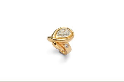 Ettore Sottsass (Austria, Innsbruck 1917-2007 Milan, Italy) 18ct gold ring, 1984-1986 Ring with a long rectangular table featuring a black onyx disc and diamonds Designed by Sottsass for Cleto Munari, Milan Produced in an edition of 9 Provenance: private collection, London Literature: Radice 1987, p. 78; Vezzosi 1990, p. 105