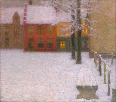 Henri Le Sidaner (Mauritius, Port Louis 1862-1939 Versailles) Bruges, 1899 Oil on canvas 66 x 75 cm Signed, dated and inscribed ‘Le Sidaner Bruges 1899’ Provenance: James Fulton, Paisley; Paisley Art Institute, Paisley, a bequest from the above in 1933 Literature: W. Philip Mayes, Illustrated Catalogue of Paintings, Drawings, Sculpture in the Collections of Paisley Corporation and Paisley Art Institute, Paisley, 1948, n° A189au., p. 49 (titled 'The Red House'); Y. Farinaux-le Sidaner, Le Sidaner: L'oeuvre peint et gravé, Milan, 1989, ill. p. 70, n° 86