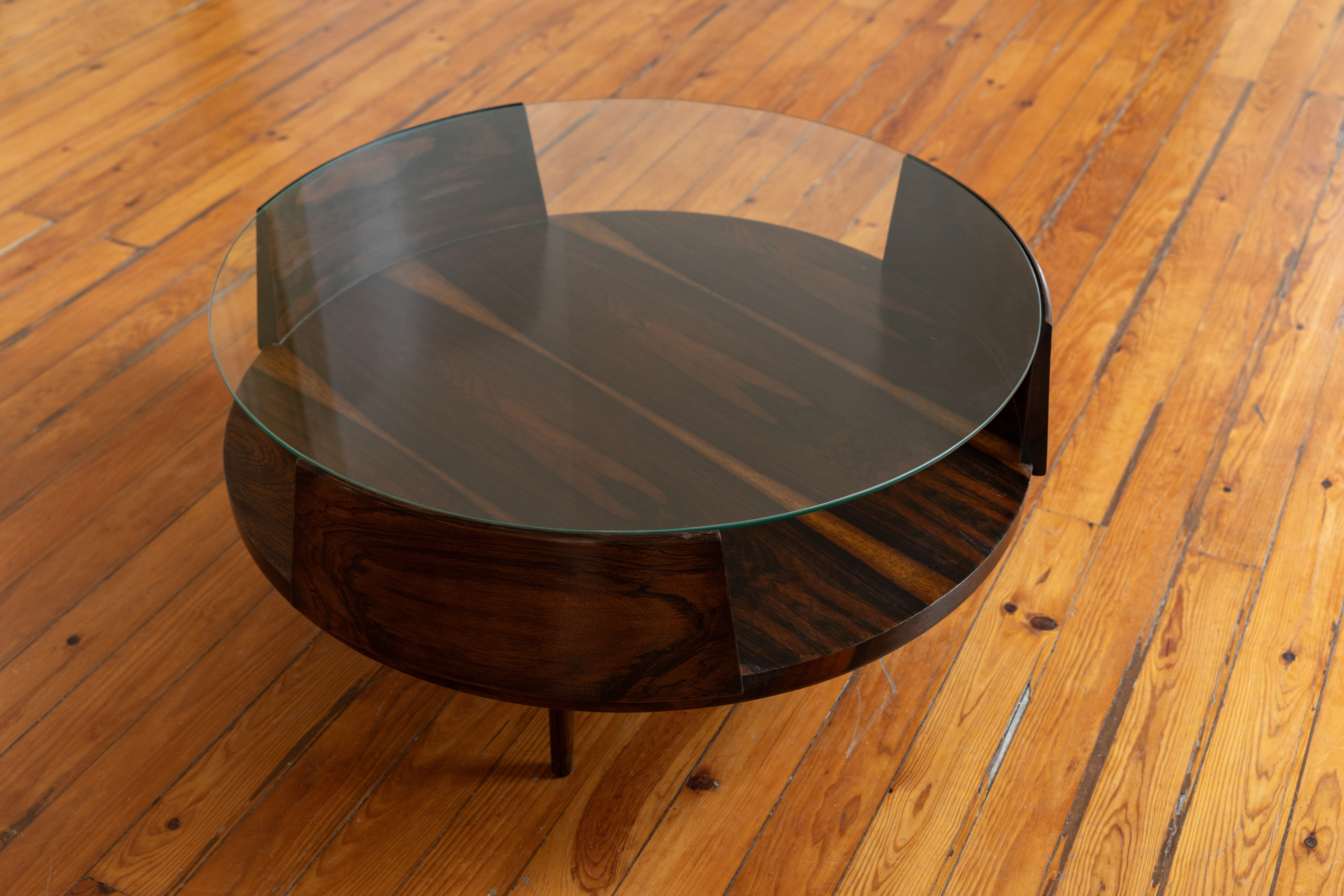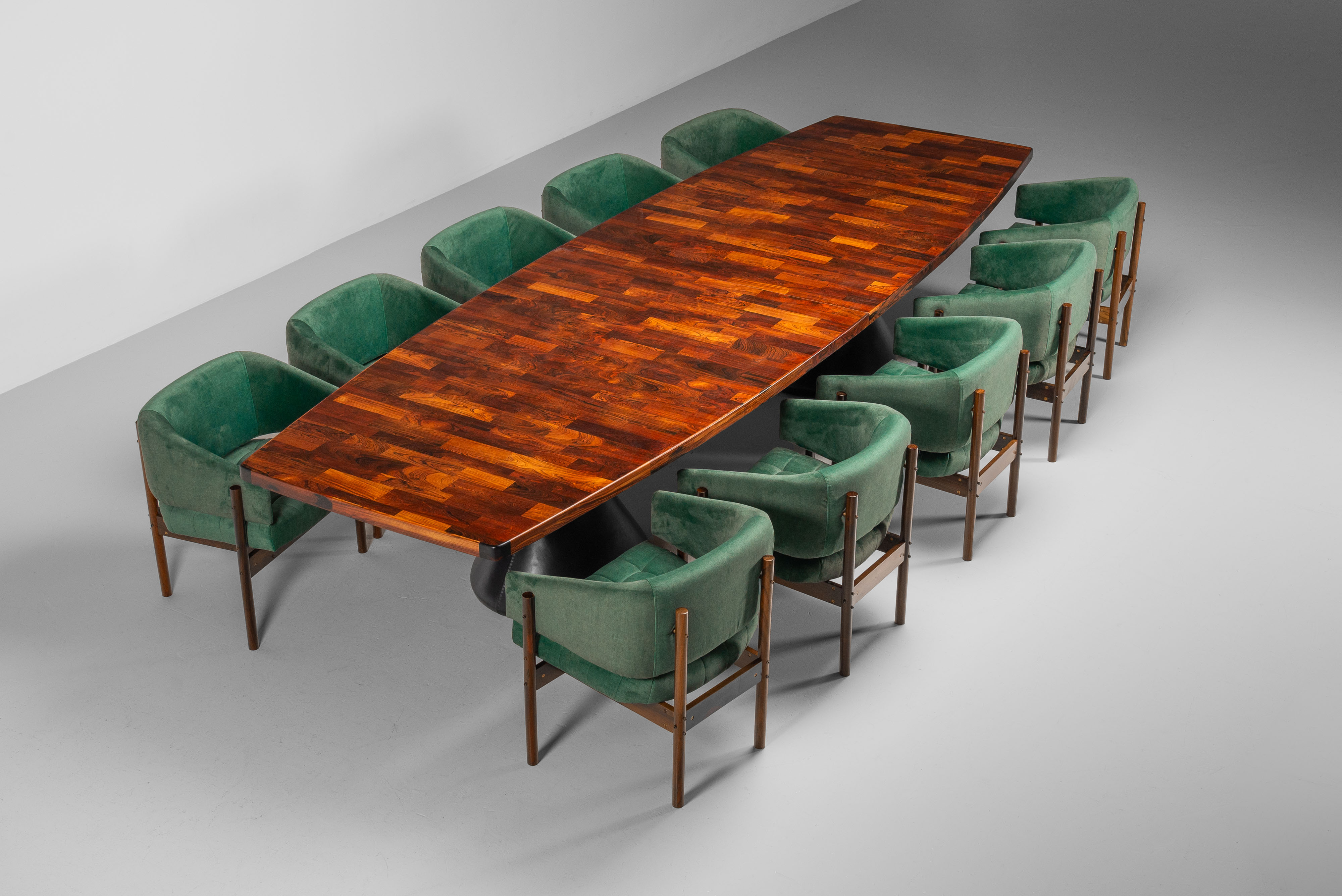 Ado Chale (Brussels, 1928-2025) Dining table, circa 1970 Resin top inlaid with carnelian agate stones H 71.5 cm - Ø 173 cm This work is accompanied by a certificate of authenticity issued by Ado Chale This table features a backlit tabletop that enhances its sculptural presence and creates a refined play of light and shadow.