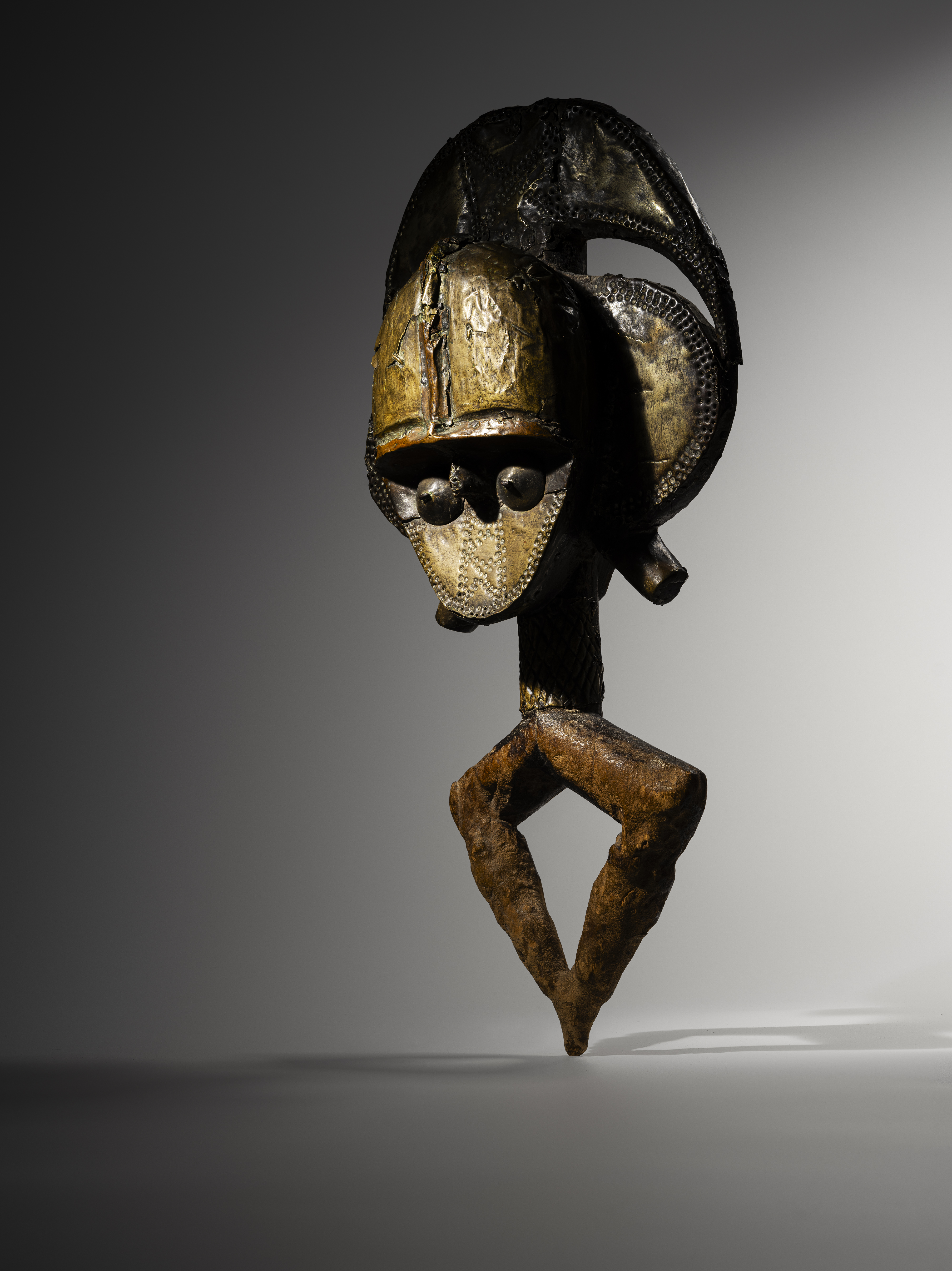 Dan 'deangle' Mask Ivory Coast, Dan people Presumed early 20th century Wood and pigment H 25 cm Provenance: Hubert Goldet (1945–2000), Paris, until 1972; Lucien Van de Velde (1933-), Antwerp, from 1972 to 1975; René (1901-1998) & Odette (1925–2012) Delenne, Brussels Literature: Arts d’Afrique Noire 34, 1988, p. 49; Utotombo, Kunst uit Zwart-Afrika in Belgisch privé-bezit, de Heusch, Brussels, 1988, p. 148, fig. 59; A ‘Harley Mask’ at the Cleveland Museum of Art: More on Masks among the Mano and Dan Peoples, Petridis, African Arts, Vol. 45, n° 1, 2012, p. 31, fig. 8; Trésors de Côte d’Ivoire, Neyt, Fonds Mercator, Brussels, 2014, p. 44-45, fig. 18 (indication: H. 26 cm); The Language of Beauty in African Art, Petridis, The Art Institute of Chicago, 2022, p. 207, fig. 164 Exhibitions: Utotombo. Kunst uit Zwart-Afrika in Belgisch privé-bezit, Palais des Beaux Arts, Brussels, 25 March-5 June 1988; The Language of Beauty in African Art, The Art Institute of Chicago, Chicago, 20 January 2022-27 March 2023 Originating from the northwest of Côte d’Ivoire, near the borders of Liberia and Guinea, the Dan are an agricultural people who primarily cultivate rice and cassava. Their way of life, complemented by hunting, fishing, and gathering, is rooted in a patrilineal society without a central authority, structured around clans led by chiefs chosen for their prestige, bravery, or agricultural success. Relations between clans, often marked by rivalries, gave rise to a rigorous social organization: young warriors ensured the group’s defense, while chiefs reinforced their influence through feasts and gifts. Local power rested on a balance between the chief, the council of elders, and the male associations, which upheld discipline, guided the initiation of young men, and preserved community cohesion. The Dan distinguish between two worlds: that of the village - a humanized and social space - and that of the forest, the realm of spirits and natural forces. It is within this duality that their art takes root, renowned for its independence and for the diversity of its styles from one village to another. In their pursuit of formal perfection, Dan artists express through their works an ideal of beauty that is both spiritual and harmonious. A symbol of this aesthetic quest, the Dan 'deangle' mask is characterized by its regular oval shape, polished surface, narrow eyes, short nose, and full, slightly parted lips. The raised scarifications emphasize the geometry and graphic strength of the composition. Of an elegance imbued with softness and femininity, it embodies the Dan ideal of beauty. Used within the Leopard secret society (go), associated with the pacifying spirit zlan, this mask served as an intermediary between young initiates and the village community. First exhibited and published for the general public in 1988, this exceptional work was most recently presented (in 2022) at the Chicago Museum. The mask’s deep gaze, highlighted by a fine band across the eyes, captures the viewer’s attention. Its patina, with warm brown reflections, and its concave form lend it a presence that is both powerful and serene.