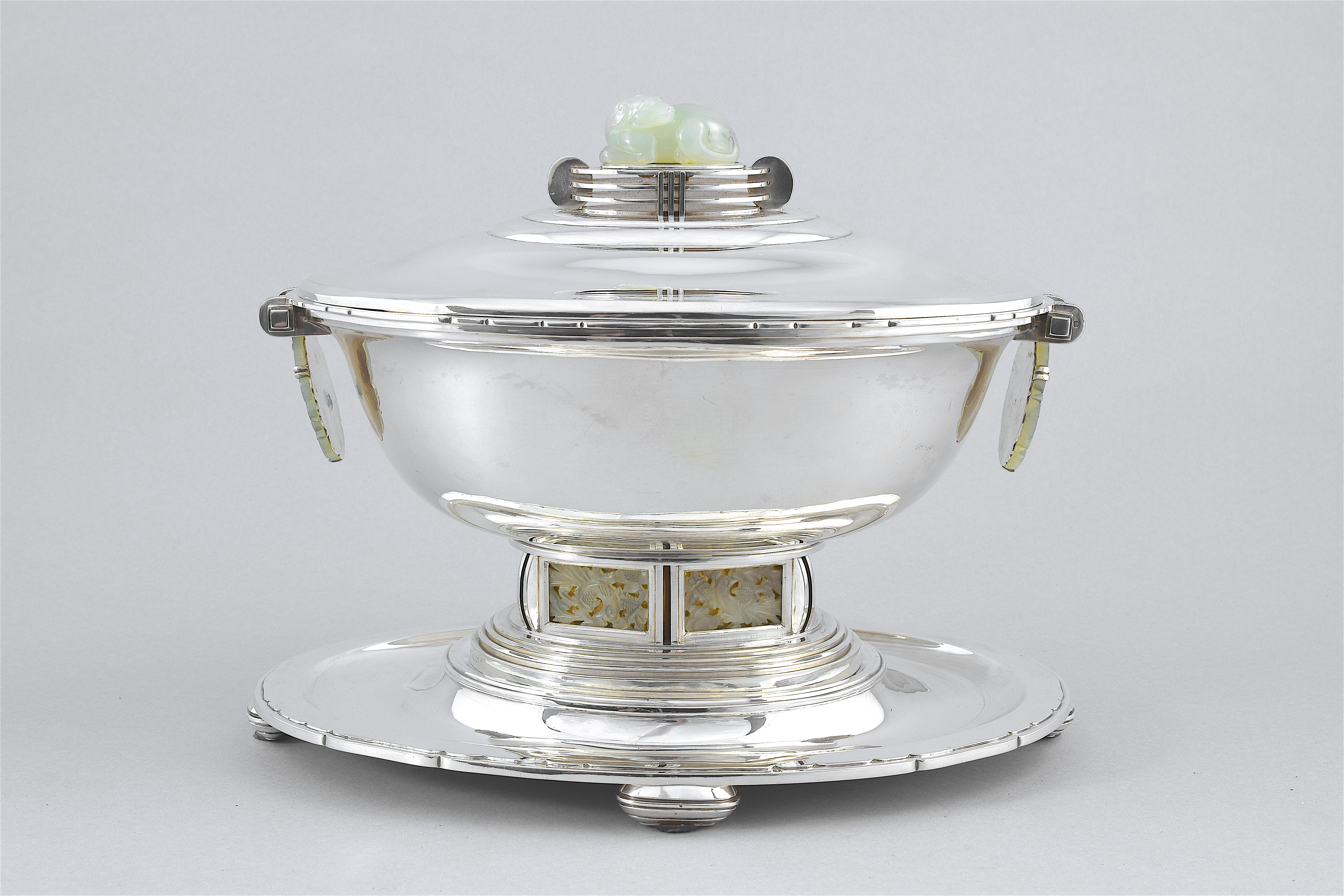 Maurice Daurat (Bordeaux 1880-1969 Meulan-en-Yvelines) Art Deco table centrepiece Paris, circa 1927-1931 Sterling silver, Macassar ebony, marble H 42.5 x W 104 x D 20 cm This striking early 20th century French silver and alabaster centrepiece on a Macassar ebony base is a superb example of Art Deco design. Designed by Maurice Daurat in Paris, circa 1927-1931. Maurice Daurat was famous for his limited editions and large commissioned works. His style is characterised by geometrical, strict shaping, emphasising volume and material.