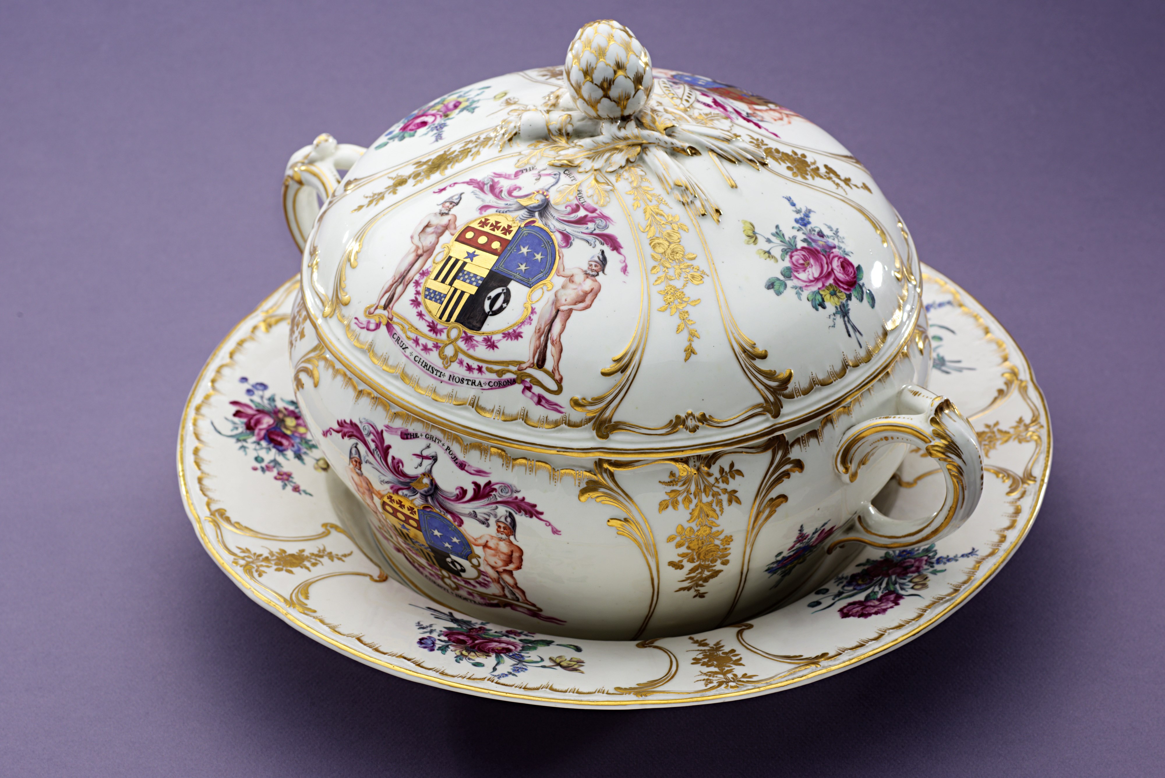 Soupière de William Mercer of Aldie, 1770, porcelaine, soupière : Ø 37,5 cm, plat : Ø 39 cm.