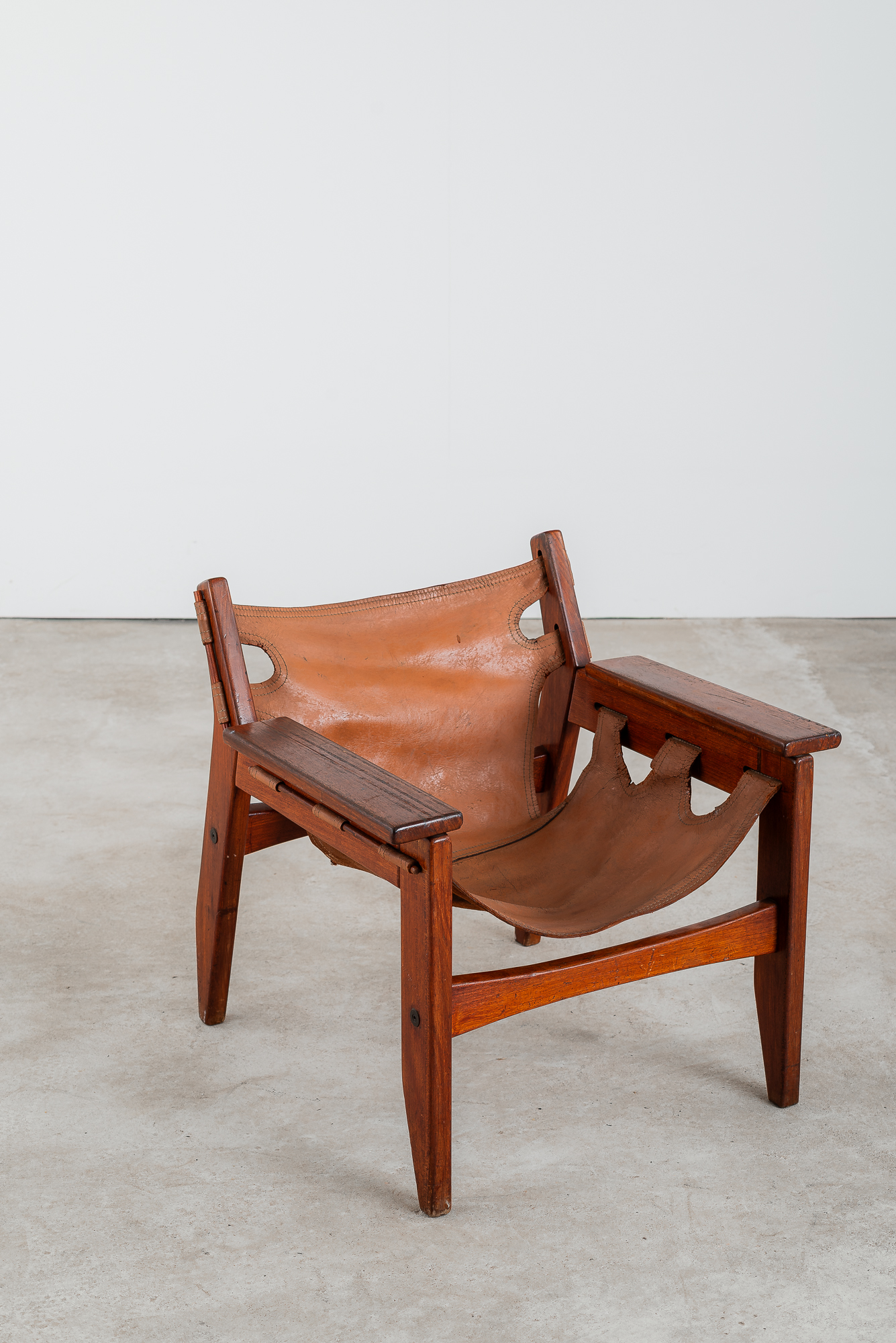 Sergio Rodrigues (Rio de Janeiro, 1927–2014) 'Kilin' chair, 1970s Solid wood, leather H 68 x W 68 x D 68 cm Origin: Brasil Provenance: private collection, Rio de Janeiro; Galeria Bessa Pereira collection Literature: Vicente, A., & Vasconcellos, M. (Comps.), Móvel moderno brasileiro (1st edition), São Paulo: Olhares, 2017, p. 302; Cals, S, Sergio Rodrigues, Rio de Janeiro: Icatu, 2000, p. 142