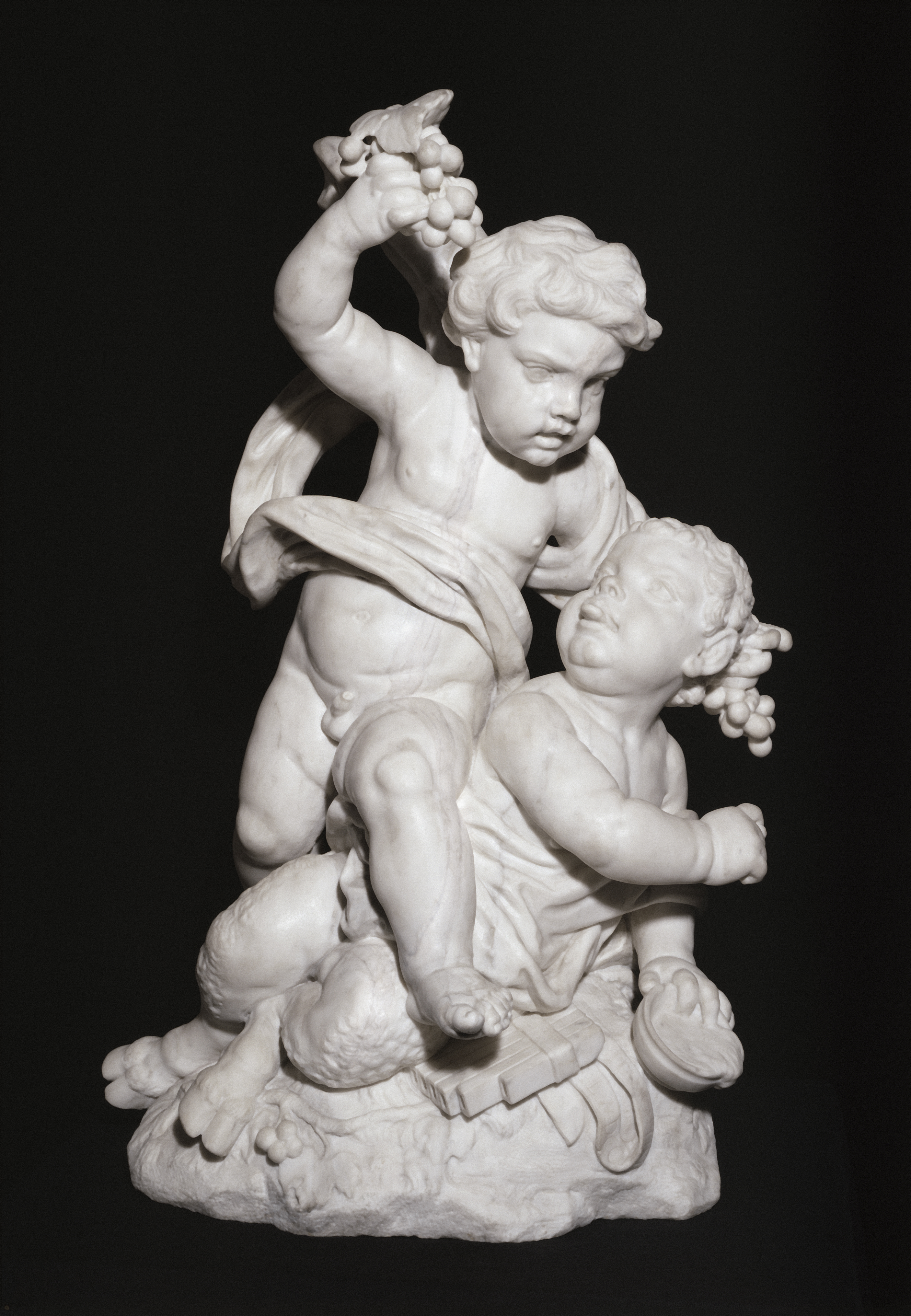 Giuseppe Piamontini (Florence, 1664-1744) Small Faun playing with a Satyr, 1710 Carrara marble H 79 cm Signed and dated 1710 Provenance: private collection, Florence Literature: Sandro Bellesi, I marmi di Giuseppe Piamontini, ed. Polistampa 2008 Ideal pendant 'Eros and Anteros' at the Money Museum in Palazzo Pitti, Florence