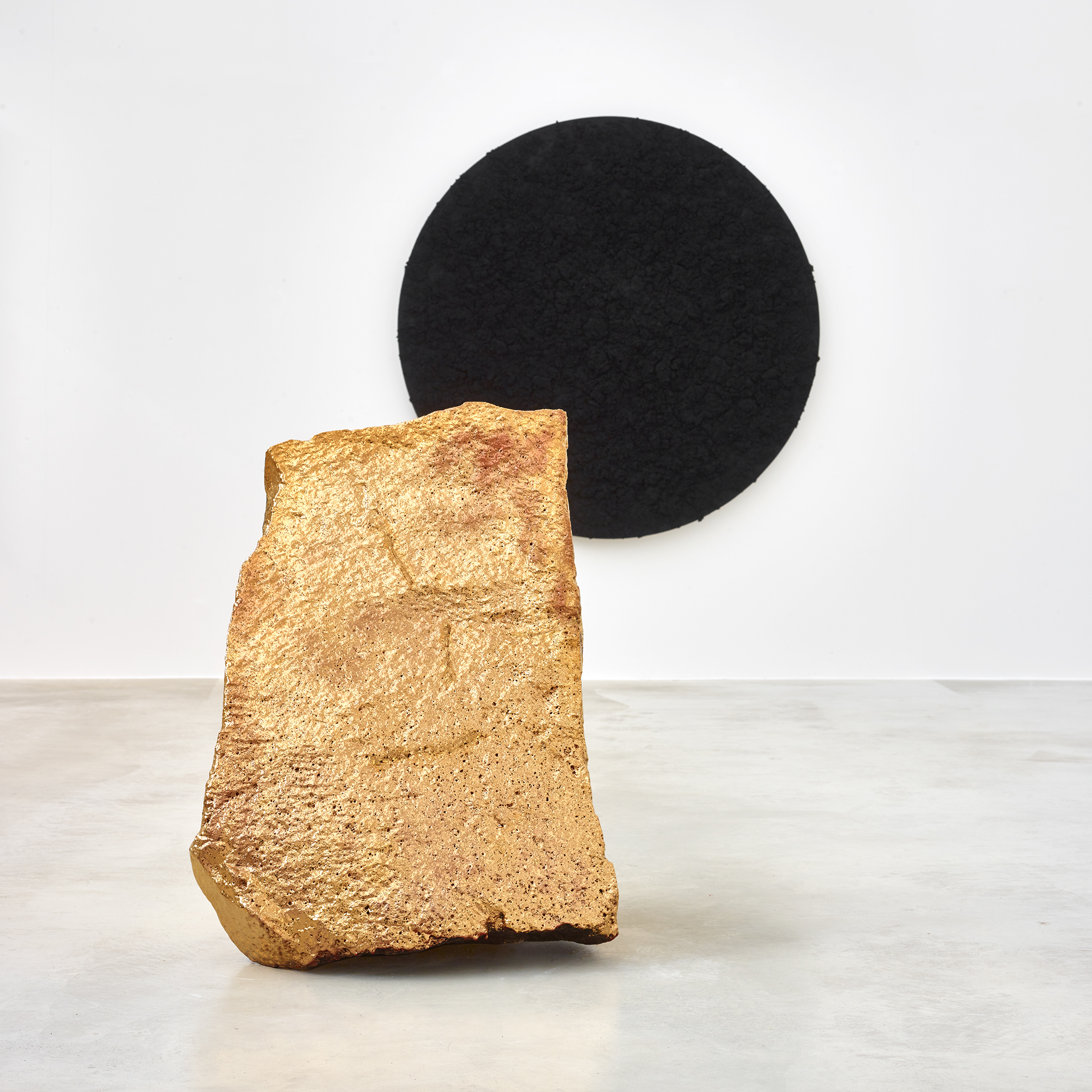Axel Vervoordt Gallery is pleased to present Into the Deepest by Bosco Sodi, an exhibition featuring a series of dense and deeply black paintings, alongside golden stone sculptures. Sodi describes black as being “not just one colour of so many, nor is it an element or material of so many. Black bathes everything in an absence, reveals an opacity, and dissolves all shades of shadow and light". This pure darkness stands in contrast to the light emitting from the golden sculptures as if, even in the darkest places, there’s illumination to be found. These works were first presented during the exhibition titled Ergo Sum, which ran from the 4th of September until the 6th of December 2020 at CAC Málaga, Spain.