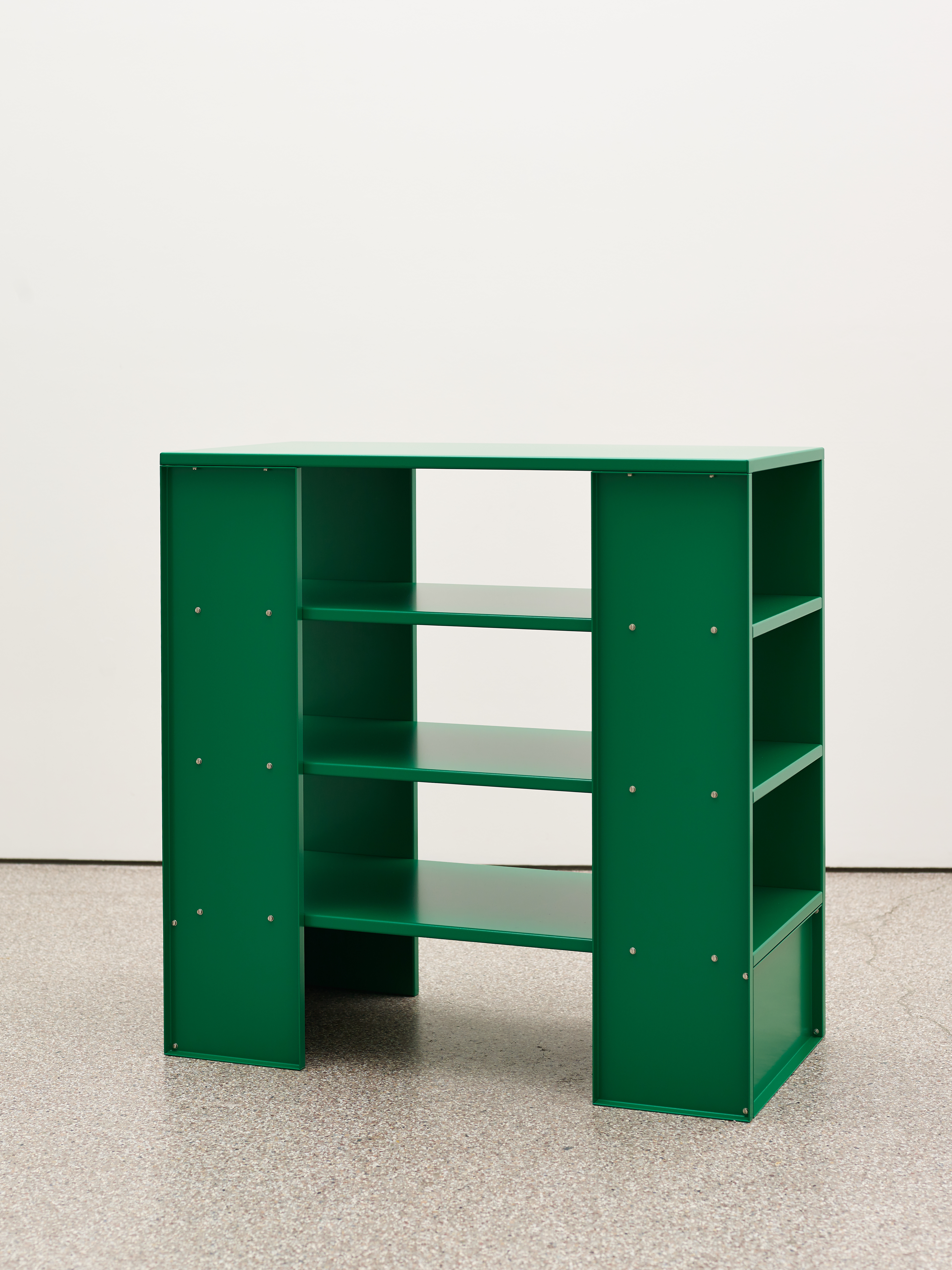 Donald Judd, Bookshelf 14, 1984, Aluminium / mint green RAL 6029, H 100 x W 100 x D 50 cm
