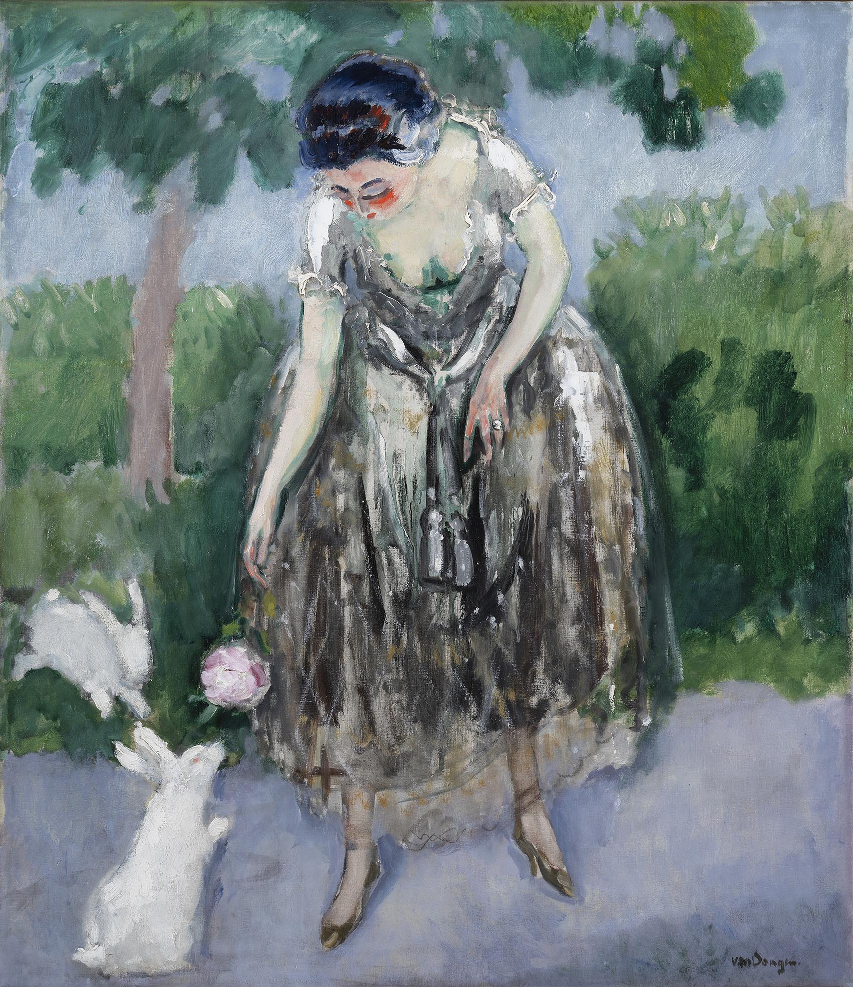 Kees Van Dongen (Delfshaven 1877–1968 Monte Carlo), La Femme Aux Lapins, circa 1921, original oil on canvas, 92.5 x 81 cm, signed lower right: Van Dongen