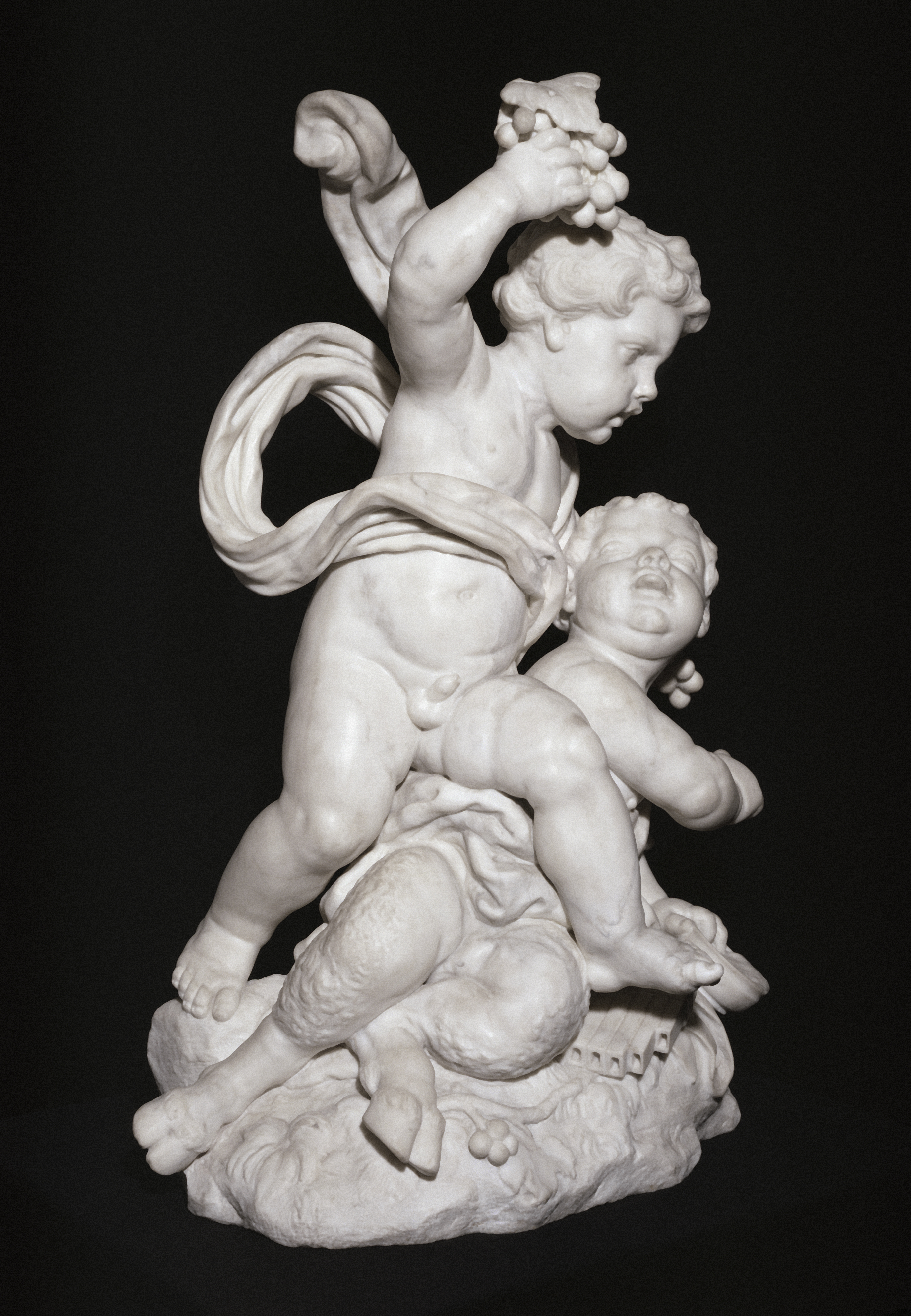 Les deux putti présentés à la BRAFA, issus d’une même collection privée belge, sont stylistiquement et dimensionnellement comparables à ceux conservés au musée, mais présentent d’anciennes fractures, très probablement consécutives au sac de 1796. Contrairement aux exemplaires du Musée M, ils ne présentent aucune encoche d’ancrage au revers, suggérant qu’ils n’étaient pas destinés à être fixés à une paroi.