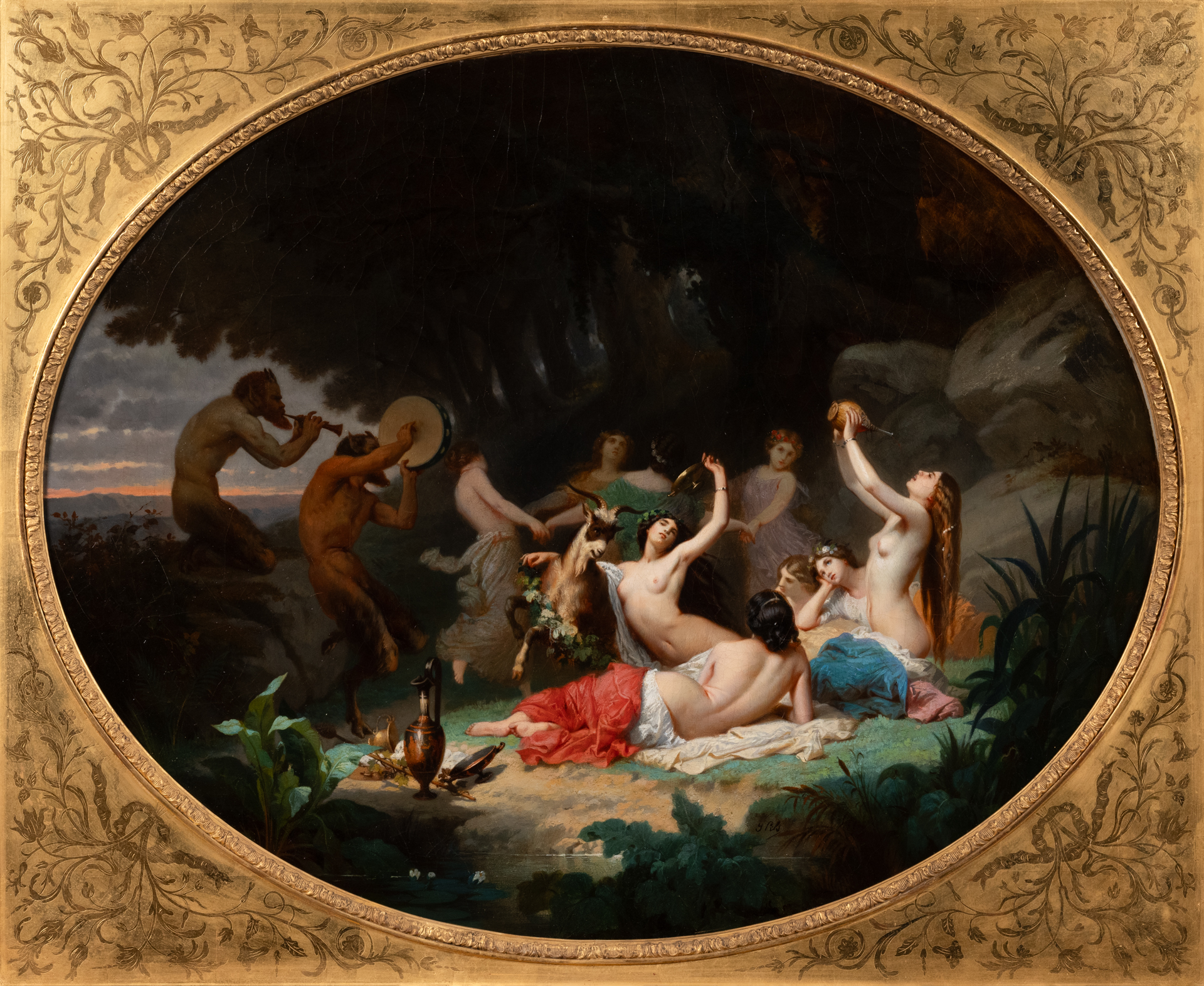 Figure majeure de la peinture française du XIXe siècle, Isidore Pils développe une œuvre où se conjuguent exigence académique et sens aigu de la mise en scène. Rare sur le marché, Bacchanale au clair du soir s’inscrit dans la veine précieuse de ses compositions mythologiques idéalisées. Par sa lumière crépusculaire et sa composition presque scénographique, cette toile révèle une facette intime et poétique de l’artiste, en étroite résonance avec les recherches plastiques menées au moment de la réalisation des grands décors de l’Opéra Garnier.