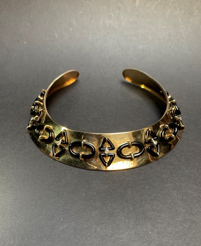 Ettore Sottsass (Austria, Innsbruck 1917-2007 Milan, Italy) 18ct gold ring, 1984-1986 Ring with a long rectangular table featuring a black onyx disc and diamonds Designed by Sottsass for Cleto Munari, Milan Produced in an edition of 9 Provenance: private collection, London Literature: Radice 1987, p. 78; Vezzosi 1990, p. 105